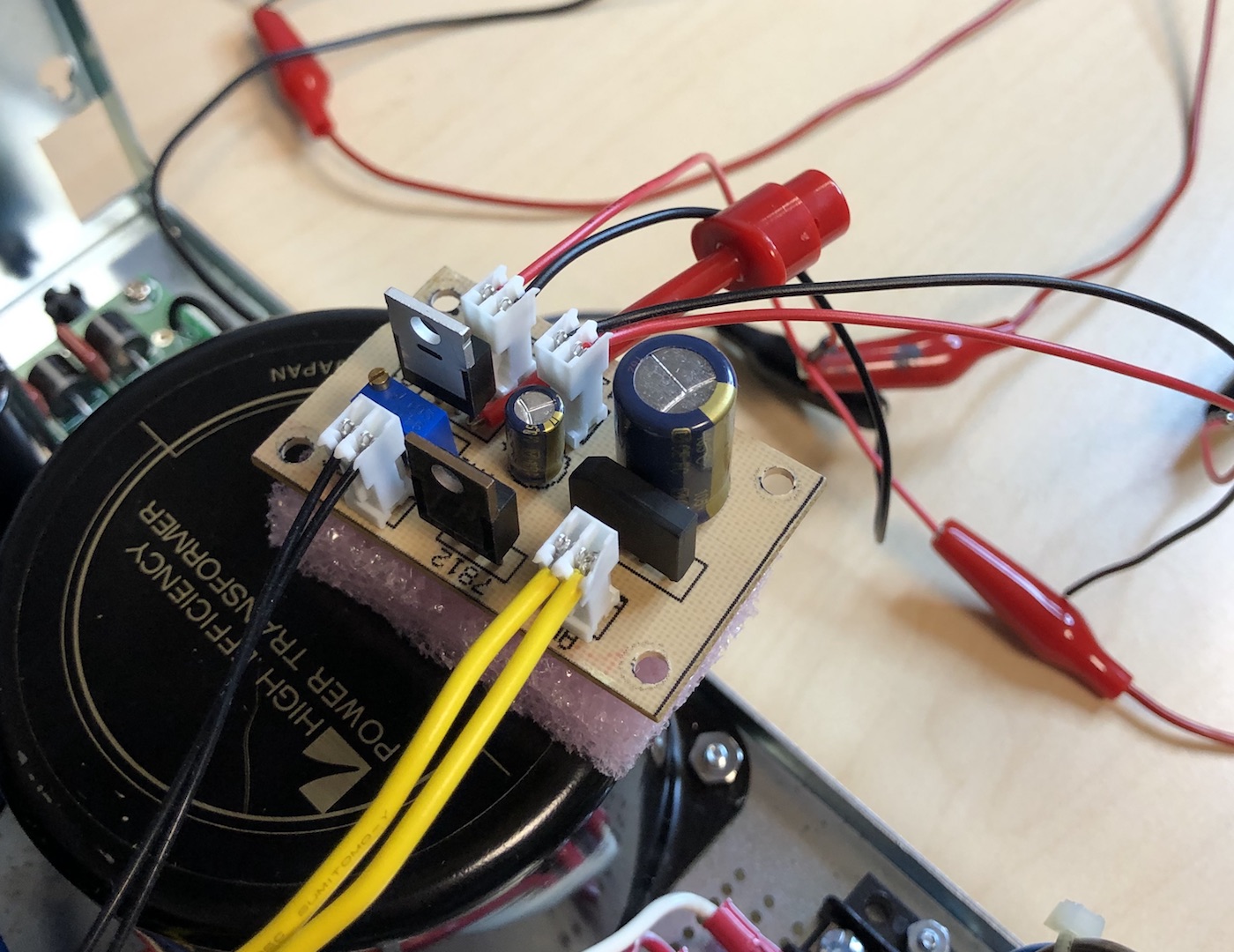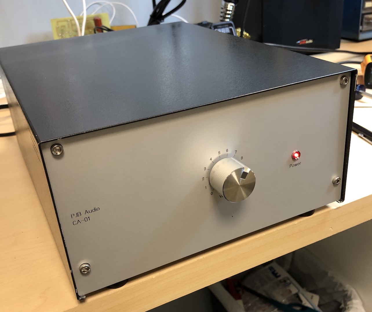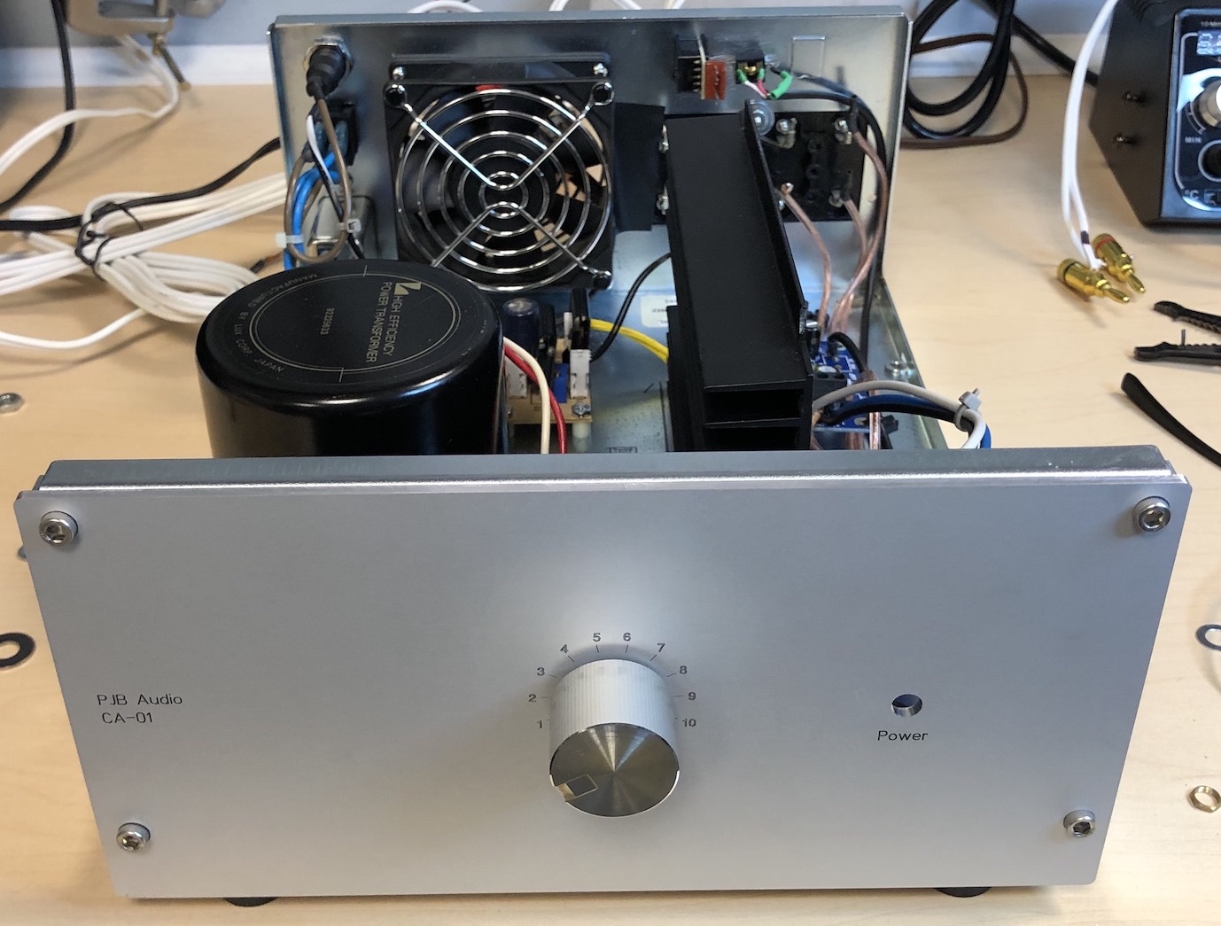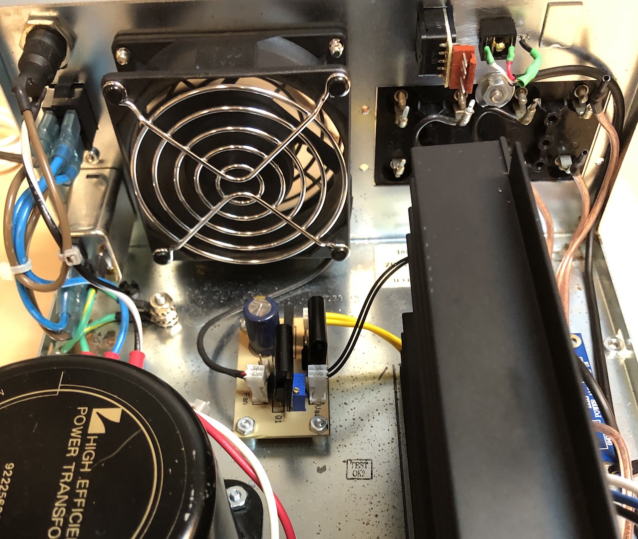 I took a couple weeks off around the Christmas holiday (2019) and was looking for a project. I wanted to replace the amp that powered my theater room seating shakers (Tactile Transducer Bass Shaker). I had a bunch of unused stuff around and decided to resurrect the old Gain Clone Amplifier boards. I had an old LTO-8 tape drive case. I had stripped out everything but the fan and power switch. The only issue with the case was it did not have a face plate. I discovered Front Panel Express (link), and was able to design and purchase a new front panel for under $50 US. I also wanted to control the fan based on heat sink temperature, so I designed and built a Thermistor based control circuit. Pictures and descriptions below: